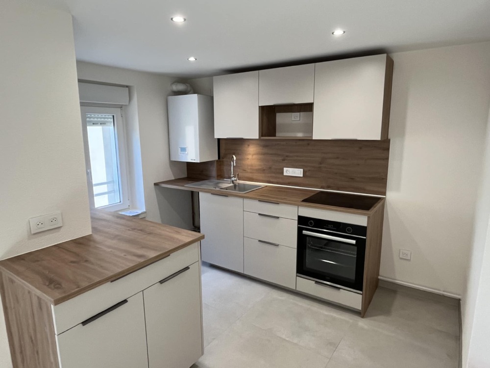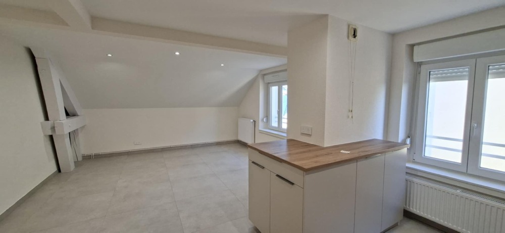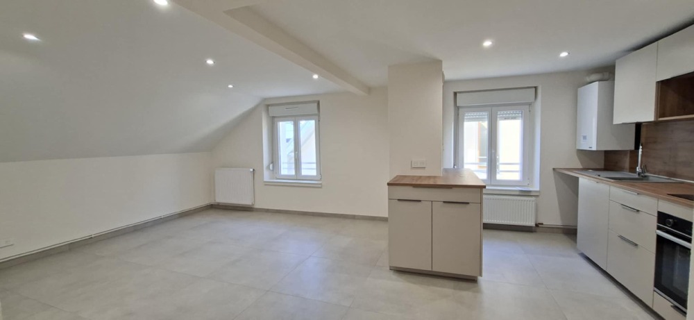 Appartement de type F3 bis au 3ème et dernier étage, d'environ 62m2 (72m² au sol), avec sa cuisine équipée, salon/séjour , deux chambres, un bureau, une salle d'eau, un WC séparé et une cave.
